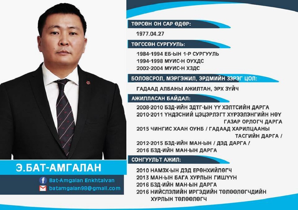 2016 оны сонгуулийн маргаан шийдэгдээгүй тул тус дүүрэг хоёр жил гаруй хугацаанд Засаг даргагүй байсан юм. Тэгвэл Баянзүрх дүүргийн ИТХ-ын өнөөдрийн хуралдаанаар Засаг даргад Э.Бат-Амгаланг дэмжиж, батламжлуулахаар нийслэлийн Засаг даргад нэрийг нь өргөн барив. Нийслэлийн Засаг дарга С.Амарсайхан Баянзүрх дүүргийн ИТХ-аас ирүүлсэн саналыг судалж, Э.Бат-Амгаланг дүүргийн Засаг даргаар томилов.