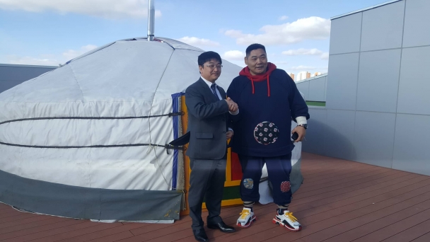 Энэ талаар түүнээс тодруулахад "Японд анхны Монгол сумоч байсны хувьд "Чингисийн үр сад" гэх сумогийн тухай уран сайхны кино япончуудтай хамтарч хийж байна. Хамтран ажиллаж байгаа япончууд Монголд ирсэн. Бид кино гэхээр том холливудын хэмжээнд сэтгээд хөрөнгө мөнгөө хайгаад энд, тэндээс хандив цуглуулдаг. Гэхдээ энэ бол тийм биш. Япончууд хөрөнгө мөнгөө босгочихсон, монголчууд хамтраад ажиллах гэж байгаад таатай байна" гэв.