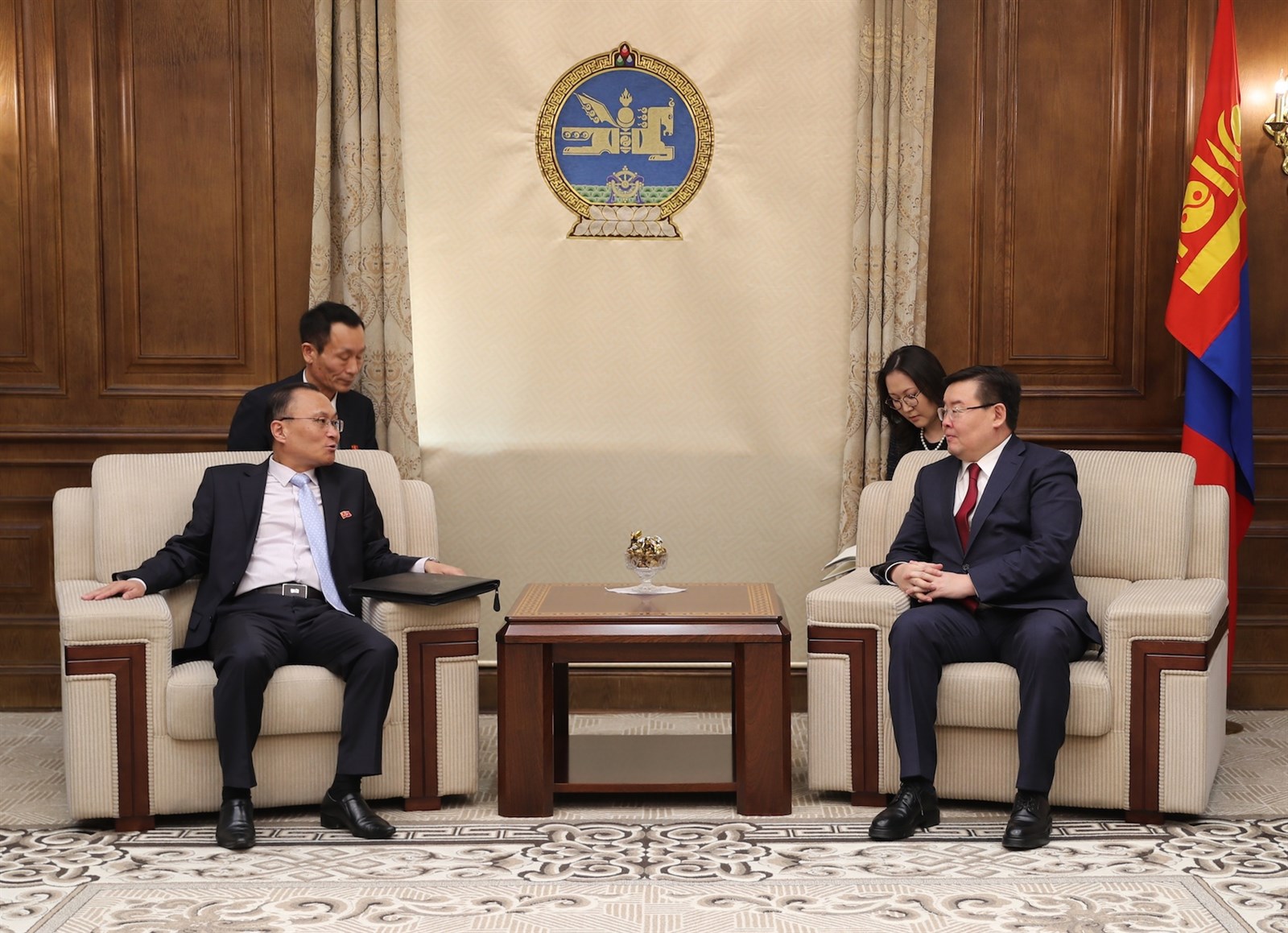 Монгол Улсын Их Хурлын дарга Г.Занданшатар БНАСАУ-аас Монгол Улсад суугаа Онц бөгөөд Бүрэн эрхт Элчин сайд О Сын Хо-г өнөөдөр /2019.04.02/ хүлээн авч уулзлаа.