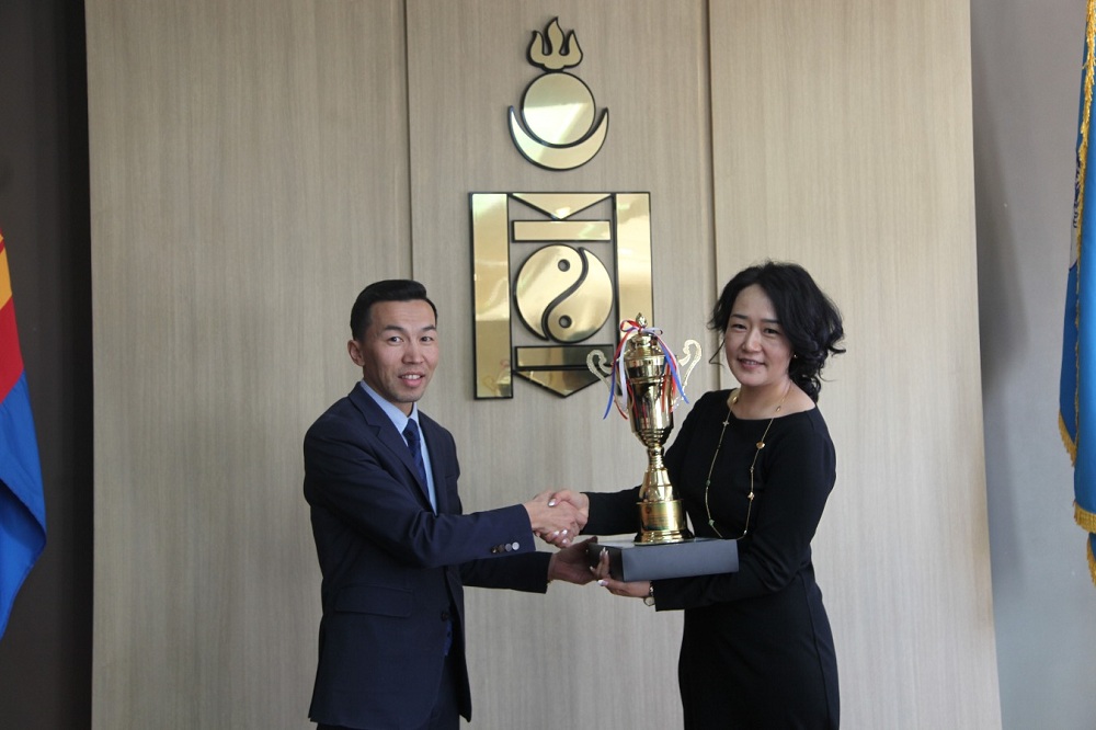 Иймд өнөөдөр /2019.04.04/ дүүргийн Иргэдийн төлөөлөгчдийн хурлын тэргүүлэгчдийн Нарийн бичгийн дарга бөгөөд ажлын албаны дарга Г.Болормаад дүүргийн Засаг даргын орлогч Б.Наранчулуун“УЛААНБААТАР МАРАФОН-2019” цомыг гардууллаа.