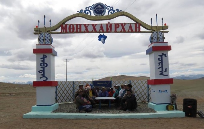 Ховд аймгийн Мөнххайрхан сумын 90 жилийн ойг угтсан бүтээн байгуулалтын ажлын хүрээнд Ерөнхий боловсролын 12 жилийн багш, ажилчид санаачлан сумын угталтын хаалга бүтээн босгожээ. Сумын угтах хаалгыг өөрсдийн хөрөнгөөр таван сая төгрөг зарцуулан босгожээ.