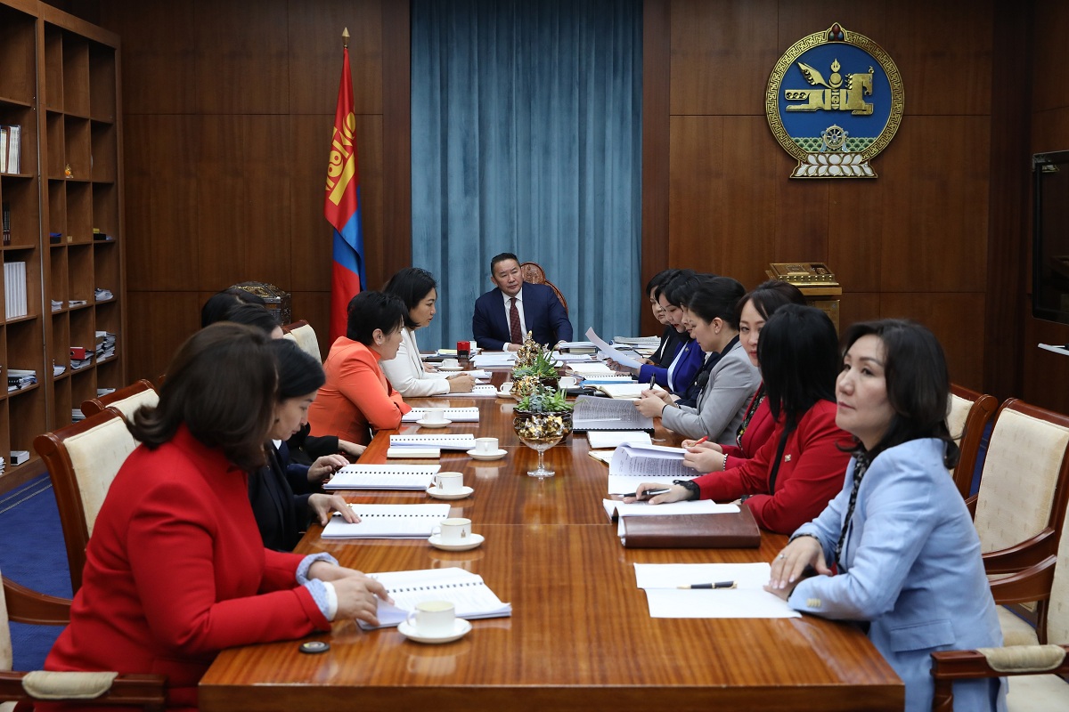 Уулзалтын үеэр Монгол Улсын Ерөнхийлөгчийн Иргэний нийгэм, хүний эрхийн бодлогын зөвлөх Г.Уянга хүүхдийн эсрэг хүчирхийллийг бууруулахын тулд Монгол Улсын Ерөнхийлөгчийн зүгээс баримталж буй бодлого, зарим шийдвэрийг танилцуулсан бол Монгол Улсын Ерөнхийлөгчийн орон тооны бус зөвлөх Р.Булгамаа одоо хэрэгжиж буй хуулиуд нь хэрхэн хэрэглэгдэж байгаа асуудлаар УИХ-ын эмэгтэй гишүүдэд хэрэг, баримтад тулгуурласан мэдээлэл өглөө.