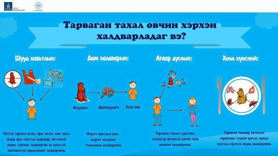 - Тарваганы түүхий эд, махыг, хот, суурин газарт тээвэрлэж оруулахгүй байх;