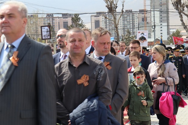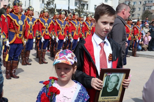 “Мөнхөд дурсагдах дайчид” жагсаалд оролцсон монголчууд болон оросууд Халх голын дайн, Аугаа их Эх орны дайны ялалтад хувь нэмрээ оруулж явсан өвөө, аав, ойр дотны хүмүүсийнхээ хөргийг барьж алхлаа. Түүнчлэн ахмад дайчид, цэрэг хувцастай бяцхан монгол, орос хүүхдүүд жагсаалыг чимж байсан юм.