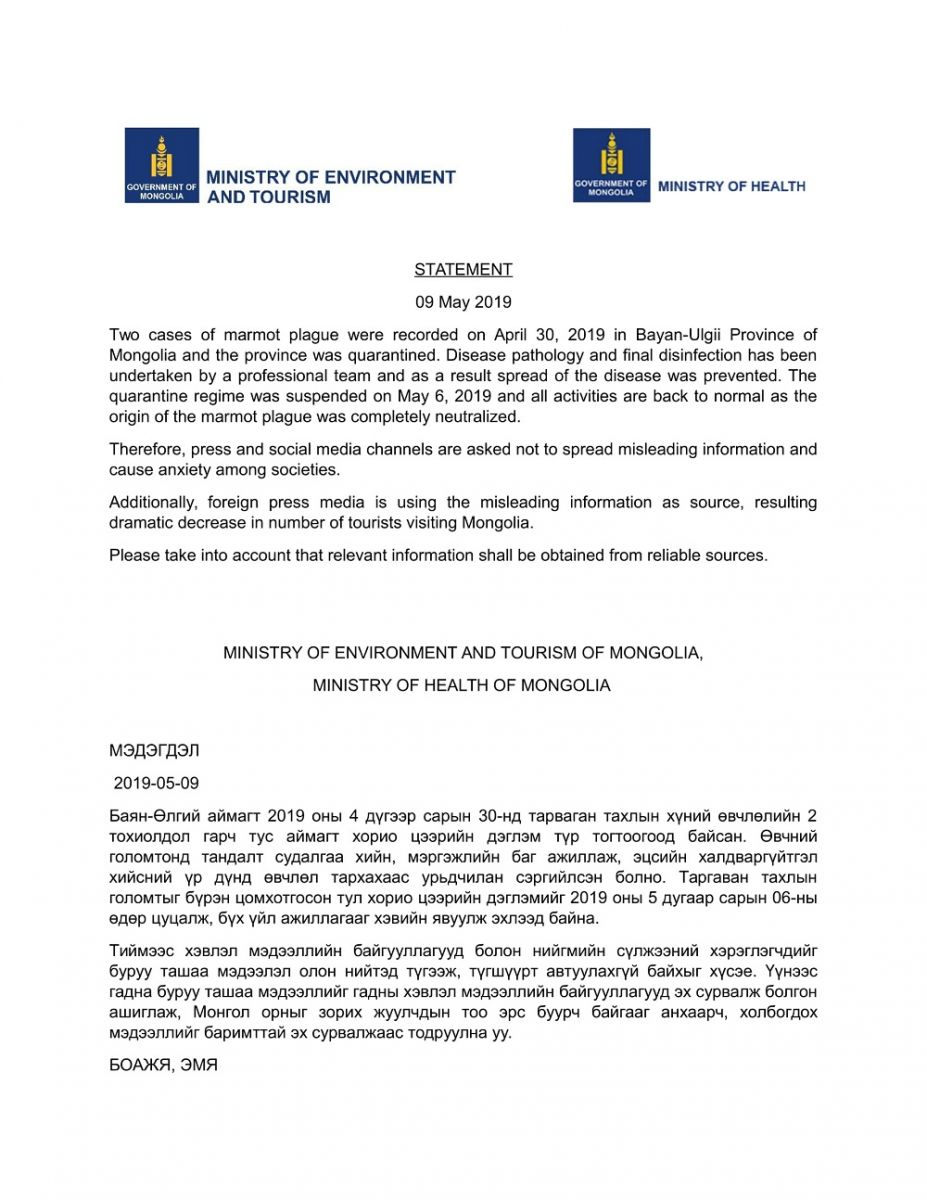 Тиймээс хэвлэл мэдээллийн байгууллагууд болон нийгмийн сүлжээний хэрэглэгчдийг буруу ташаа мэдээлэл олон нийтэд түгээж, түгшүүрт автуулахгүй байхыг хүсэе. Үүнээс гадна буруу ташаа мэдээллийг гадны хэвлэл мэдээллийн байгууллагууд эх сурвалж болгон ашиглаж, Монгол орныг зорих жуулчдын тоо эрс буурч байгааг анхаарч, холбогдох мэдээллийг баримттай эх сурвалжаас тодруулна уу.