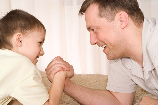 Ямар нэгэн уралдаан, тоглоом тоглоход найзуудаас нь гадна хамгийн сайн хамтрагч мөн өрсөлдөгч байж чаддаг хүн бол зөвхөн аав. Энэ бол эр хүний зан чанарт сургах муугүй дасгал сургуулилт юм. Энэхүү төрөл бүрийн тоглоом, тэмцээнээр хүүхдэд ямар их хүч хөдөлмөр, чармайлтаар хожил авдгийг зааж хожигдол гэдэг нь аливаа тоглоом, тэмцээний нэгэн хэсэг гэдгийг ойлгуулах нь зүйтэй. Ингэснээр хүүхэд хожигдол амссан ч бууж өгөлгүй дахин тэмцэлдэж сурна.