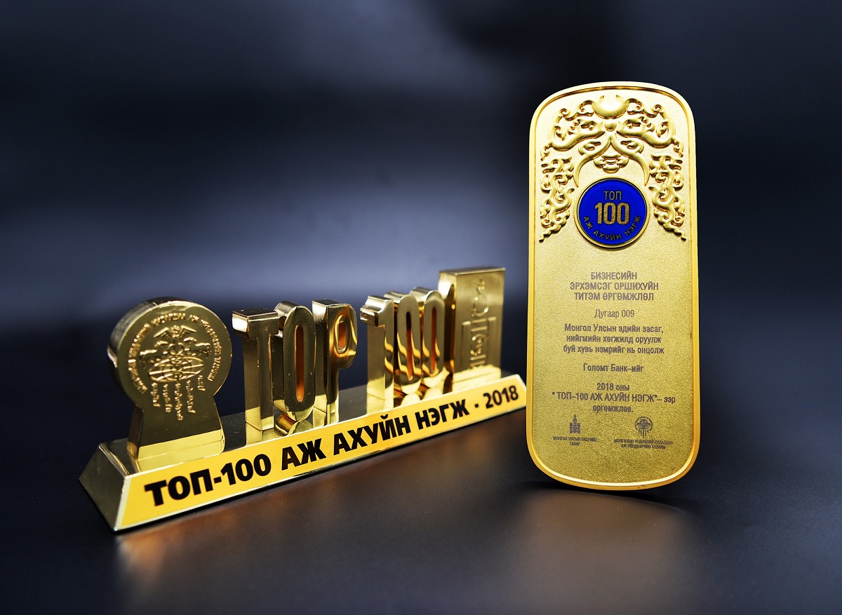 Монгол Улсын Засгийн газар, Монголын Үндэсний Худалдаа Аж Үйлдвэрийн Танхим хамтран Монгол Улсын нийгэм, эдийн засгийн хөгжилд жинтэй хувь нэмэр оруулсан шилдэг 100 аж ахуй нэгжийг шалгаруулдаг уламжлалтай. Голомт банк уг нэр хүндтэй шагналыг 16 дахь удаагаа хүртэж байна.