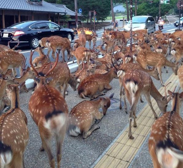 Нара хот гудамжаар нь чөлөөтэй бэлчих олон тооны бугаараа алдартай. 2018 онд гэхэд тэднийг үзэх гэж хоёр сая жуулчин тус хотод ирж байжээ. Жуулчид тус хотод тусгайлан зардаг будааны жигнэмэгээр бугыг хооллодог байна.
