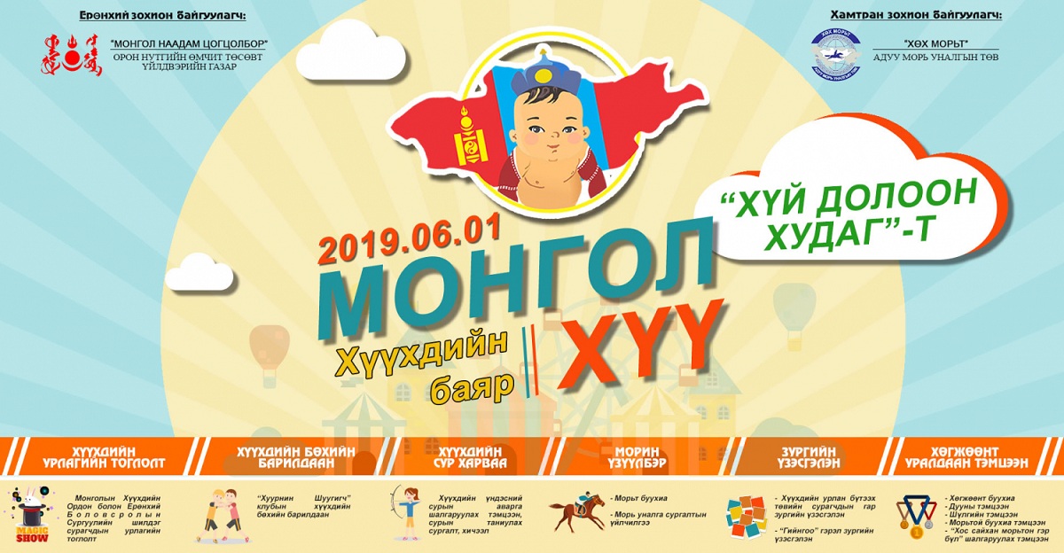 Монгол үндэсний хэв шинж маягийг агуулсан, эрийн гурван наадмын өв соёл, ёс заншлыг сурталчилсан, хүүхэд багачууддаа сурталчлан таниулах зорилготой “Монгол хүү” хүүхдийн баярын арга хэмжээ 11:00- 18:00 цагийн хооронд Хүй долоон худгийн “Хүнс, худалаа, үйлчилгээний талбайд зохион байгуулагдах бөгөөд хүүхэд, залуусыг өргөнөөр хүрэлцэн ирж оролцохыг “Монгол наадам цогцолбор” ОНӨТҮГ-ын ах, эгч нар нь уриалж байна.
