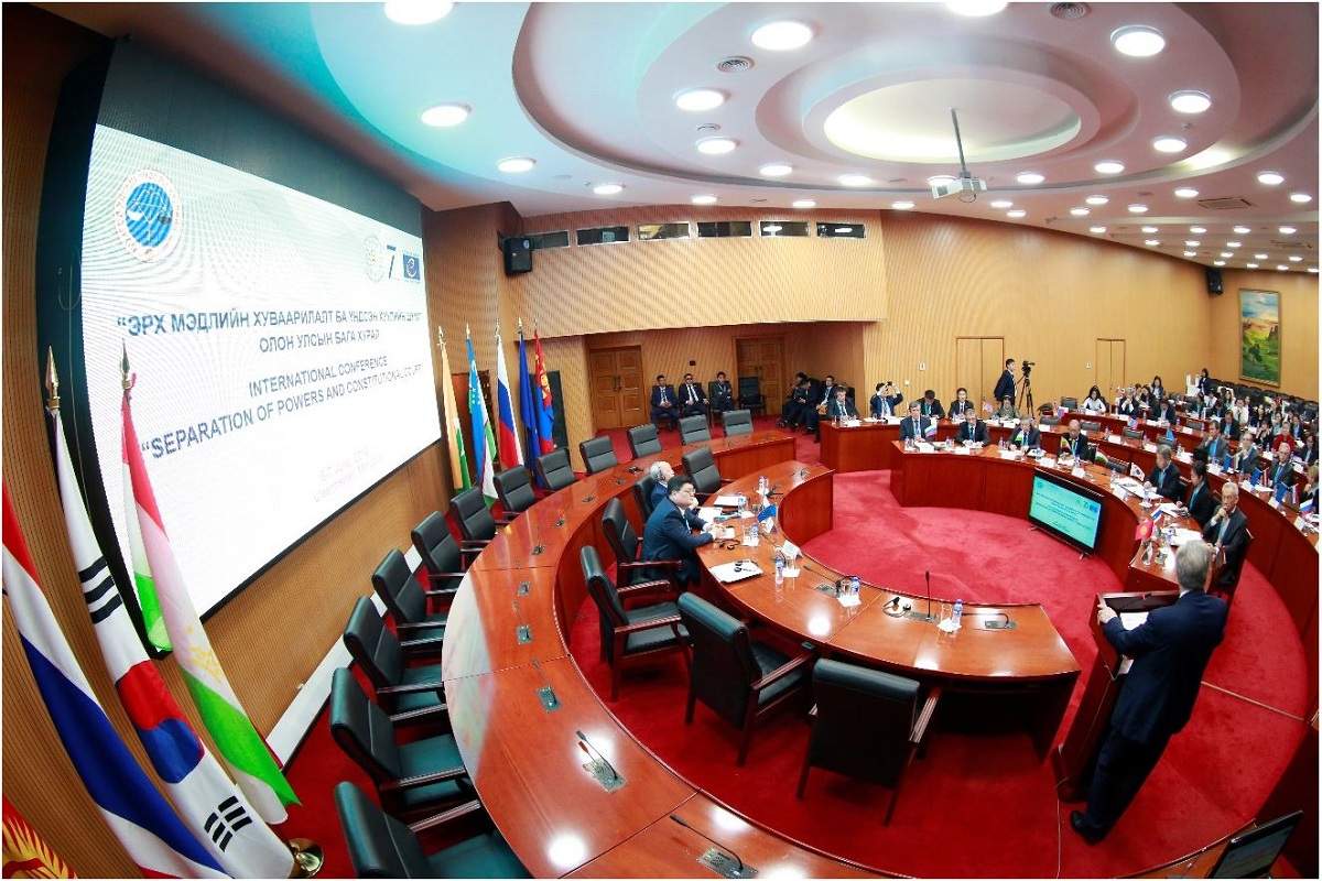Монгол Улсын Үндсэн хуулийн цэцийн дарга Д.Одбаяр олон улсын хурлыг нээж хэлсэн үгэндээ, “ “Эрх мэдлийн хуваарилалт ба Үндсэн хуулийн шүүх” сэдэв бол нийтэд ойлгомжтой хэдий ч чухал ач холбогдолтой сэдэв” гэдгийг онцлон тэмдэглээд “Төрийн эрх мэдэл хуваарилах зарчмын гол зорилго нь төрийн эрх мэдлийг засаглалын гурван салаанд хуваарилж, тэдгээр нь бие биедээ хяналт тавих, эрх мэдлийг тогтоон барих замаар төрийн тогтолцооны тэнцвэрт байдлыг хангахад үйлчлэх явдал юм. Төрийн эрх мэдлийг дан ганц нэг гарт төвлөрүүлэхгүйгээр холбогдох институтэд хуваарилж, тэдгээрийн хоорондын харилцан тэнцвэрийг хангаснаар төрийн эрх мэдлийг хангах, хүний эрхийг хамгаалах чухал механизм бүрддэг” гэдгийг цохон хэллээ.