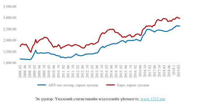 Тэгвэл энэ оны хоёрдугаар сарын байдлаар ам.долларын ханш 2632.51 төгрөгтэй тэнцэж байв.2018 онд гадаад худалдааны нийт эргэлт 12886 сая ам.доллар буюу өмнөх оны мөн үеэс 22.3 хувиар өссөн бол энэ оны гуравдугаар сарын байдлаар 3057.4 сая ам.доллар буюу жилийн өмнөхөөс 17 хувийн өсөлттэй байна. Импортын 13.7, экспортын 19.5 хувийн өсөлт үүнд нөлөөлжээ.