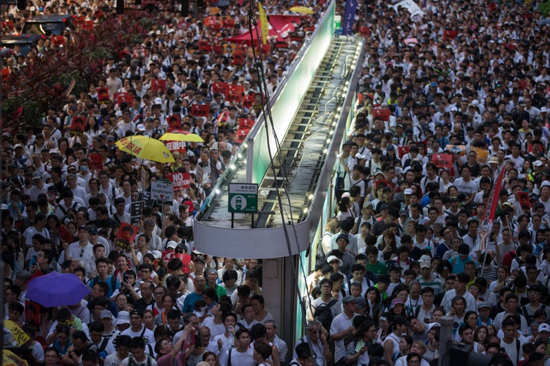 Хонконгт сэжигтэй этгээдүүдийг шилжүүлэн өгөх тухай хуулийн төсөлд оруулсан нэмэлт өөрчлөлтийг эсэргүүцсэн жагсаал болжээ. Жагсаалд сая гаруй хүн оролцсон байна. Жагсаал цуглааны үеэр цагдаа нар нулимс асгаруулагч хий ашиглажээ. Долоон хүн баривчлагдсан байна.