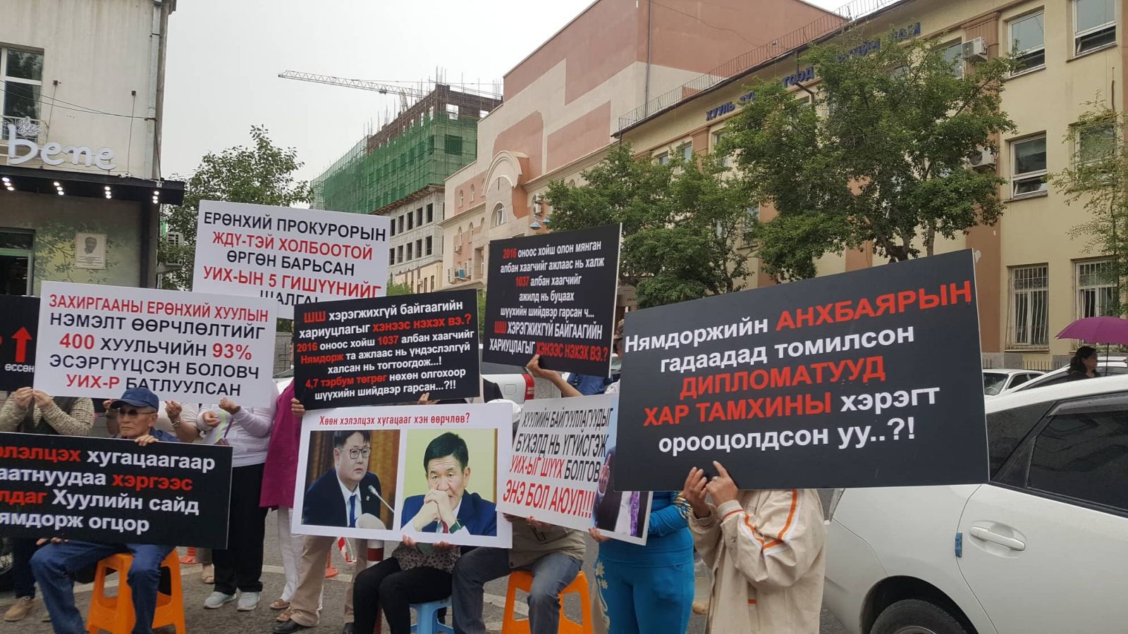 АН-ынхан Хууль зүй, дотоод хэргийн сайд Ц.Нямдоржийг албан тушаалаасаа огцрохыг шаардаж жагсаал зохион байгуулж байна. Жагсаал өнөөдөр /2019.06.10/ Хууль зүй, дотоод хэргийн яамны гадна 11.00 цагт эхэлсэн.