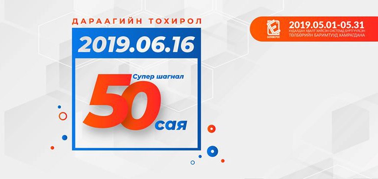 Иргэн та 2019 оны тавдугаар сарын 1-31-ний өдөр хүртэлх хугацаанд худалдан авалт хийсэн цахим төлбөрийн баримтаа 2019 оны зургаадугаар сарын 15-ны өдрийн 23 цаг 59 минутаас өмнө Цахим төлбөрийн баримтын системд бүртгүүлснээр НӨАТ-ын урамшууллын сугалаанд хамрагдан азтан болох боломжтой.