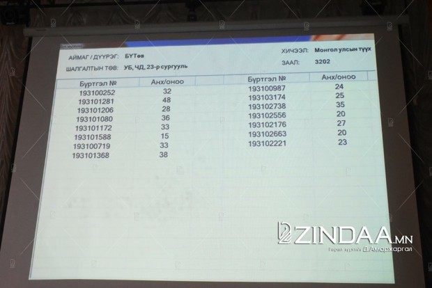 Манай сурвалжлах бага БСШУЯ-ны харьяа лаборатори 23 дугаар сургууль дээр очиж сурвалжиллаа. Тус сургууль дээр 100 гаруй хүүхэд Монголын түүхийн хичээлээр шалгалтаа өгчээ. Элсэгчдийн шалгалтын материалыг битүүмжилж, тусгай бэлдсэн өрөөнд шилэн технологи ашиглан шалгалтын дүнг шууд уншуулан гаргалаа.