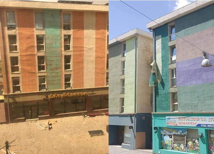 Хан-Уул дүүргийн IV хороонд байрлах залуусын гэх тодотголтой “Вива сити” хорооллын гадна талын фасат хэд хоногийн өмнө орсон борооны улмаас хууларчээ.