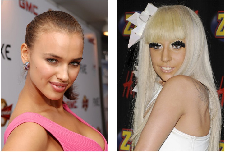 Загварын салбарт гурван жил ажилласан Шейк имиж нь болсон янаг харцаа гаргаж сурсан. Ийм харцтай байхад будаг хэрэггүй. Хөмсөг нь өргөсөж, төрх нь халуухан болж ирсэн. Леди Гага хиймэл үс, улаан уруулын будаг, хурц хөмсгөөр гангалж байв. 2010 онд Гага дөрвөн удаа хиймэл үсээ сольсон бол Ирина долгионтой хүрэн үсэндээ үнэнч үлдсэн.