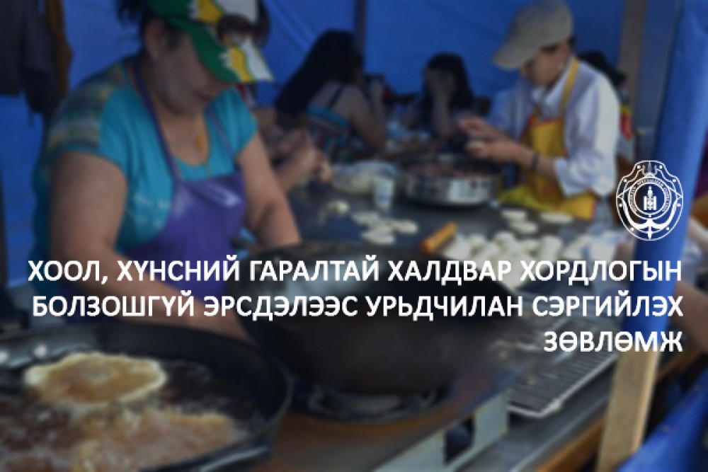 Орон нутагт баяр наадам зохион байгуулагдаж эхэлж байгаатай холбогдуулан хоол, хүнсний үйлдвэрлэл, үйлчилгээ эрхлэгч аж ахуйн нэгж, байгууллагууд үйл ажиллагаандаа дараах асуудлыг анхаарч, мөрдөж ажиллахыг зөвлөж байна.
