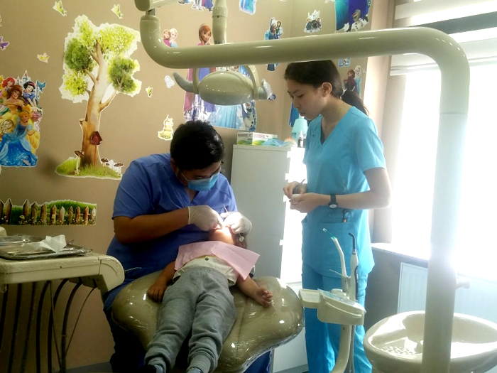 Биднийг ороход 3 настай хүү шүдээ эмчлүүлж байсан бөгөөд эмч нь эрэгтэй хүн гэхэд хүүхдийн эвийг тун ч амархан олж, уйлуулахгүй үзэж чадаж байв. Хүүхэд бүрийн үзлэг янз бүр зарим хүүхдийн шүд ихээхэн өвчлөл ихтэй байхад зарим нь шүдээ хамгаалж үзлэг хийлгэж зөвлөгөө авч байв.