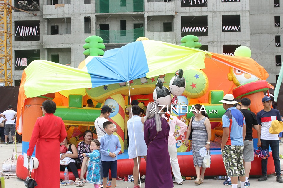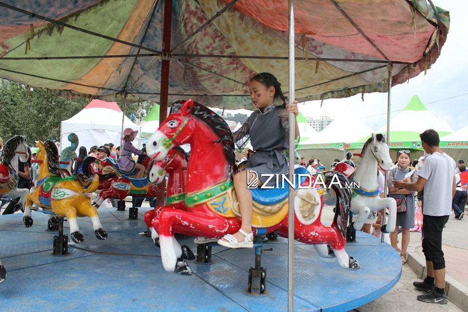 Цэнгэлдэх хүрээлэнгийн эргэн тойронд наадмын хуушуурын асар, үндэсний дээл, малгай, хувцас зарах цэг ажиллаж байна. Мөн хүүхдүүдэд зориулан тоглоомын үйлчилгээний цэг ажиллуулж байв.