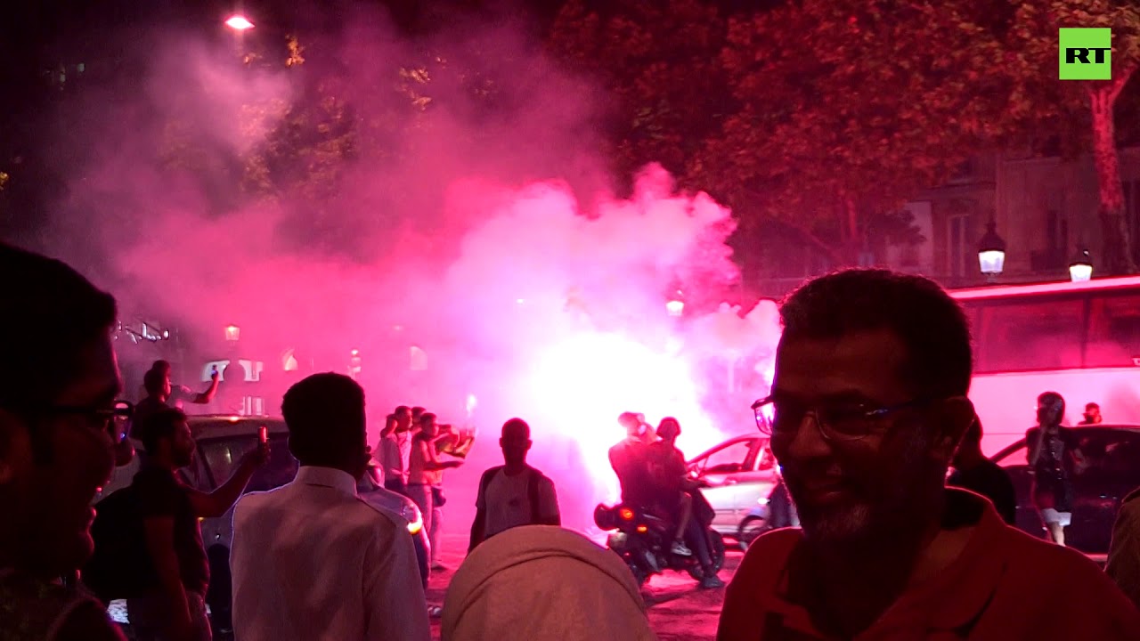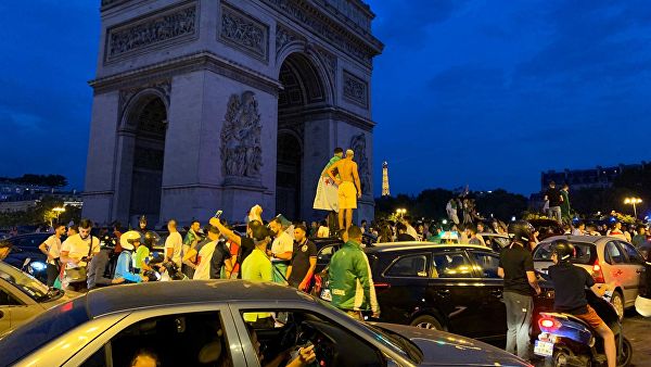 Алжирын багийн ялалтын тэмдэглэх баяр Парис хотноо орон нутгийн цагаар 23.00 цагт эхэлж, Алжирын багийг дэмжигчид Ялалтын хаалга орчмын замын хөдөлгөөнийг хааж, дуут дохио хангинуулж, салют буудаж, автомашины дээр гарч, мотоцикл, моторт дугуйгаар аюултай үзүүлбэрүүд хийж байсан аж. Нөхцөл байдал сүүлдээ хурцдаж, хамгаалалтад гарсан тусгай албаныхан руу лонх, хог зэргийг шидэж эхэлжээ. Хууль сахиулах байгууллагын ажилтнууд эцэст нь нулимс асгаруулах хий цацаж, цугларсан олон руу резинэн сумаар буудсан байна.