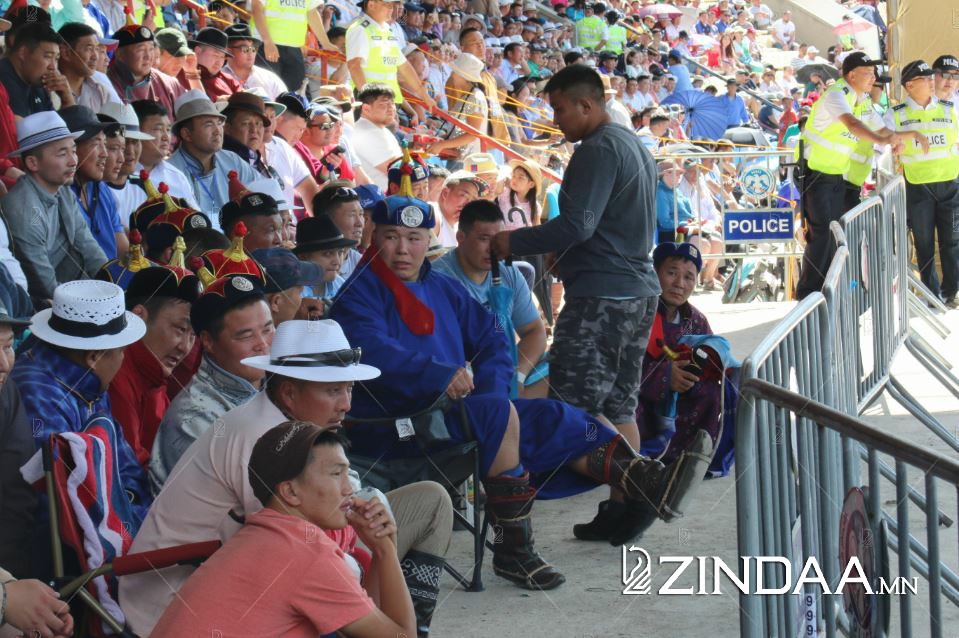 Үндэсний их баяр наадамд зодоглосон бөхчүүдийн асраас хийсэн гэрэл зургийг сонирхуулъя. Зүлэг ногоон дэвжээний гаднах бөхчүүдийн агшин таны анхаарлыг татах буй заа.
