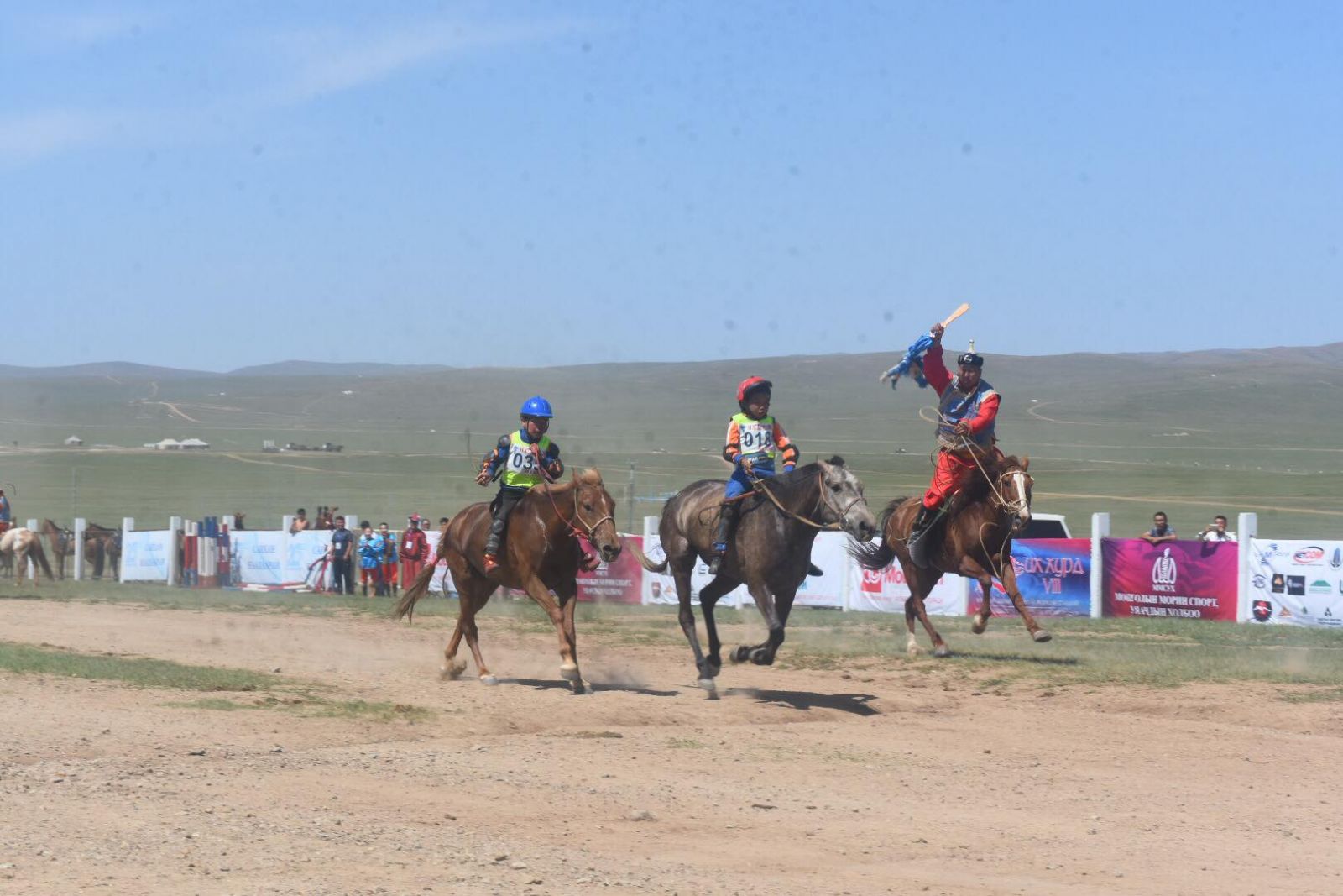 Гурван жил тутам нэг удаа зохион байгуулагддаг “Их хурд-8” уралдааны хоёр дахь өдөр 49 их насны морь Хүй долоон худгийн дэнжид тоосоо өргөлөө. Гарсан цагаасаа хойш газрын цээжинд уралдсаар Завхан аймгийн Тосонцэнгэл сумын харьяат Монгол Улсын Тод манлай уяач Т.Галбадрахын бор түрүүлсэн бол Завхан аймгийн Завханмандал сумын харьяат Ц.Мөнххуягийн цавьдар аман хүзүүнд хурдлав. Айргийн гуравт Булган аймгийн Могод сумын харьяат Монгол Улсын манлай уяач Ц.Цэнгэлийн хүрэн, айргийн дөрөвт Завхан аймгийн Тосонцэнгэл сумын харьяат, Тод манлай уяач Т.Галбадрахын хонгор халзан, айргийн тавд Нийслэлийн алдарт уяач О.Рэнчинжүгдэрийн бор алтан жолоогоо өргүүллээ. Мөн л түрүү морины байд ланд круйзер 200 автомашинаар байлж, унаач хүү есөн настай Пүрэвбат нэг өрөө байрны түлхүүр гардан авлаа. ММСУХ-ноос өнөөдөр нэг өрөө байрны эзэн болсон гурван хүүхдэд байрыг нь албан ёсоор хүлээлгэн өгч хадаг зүүж өгөх аж.