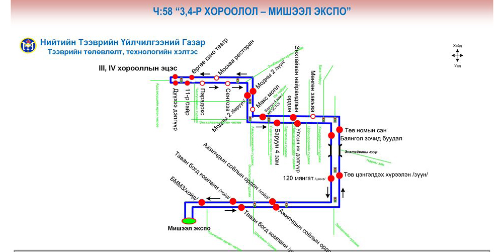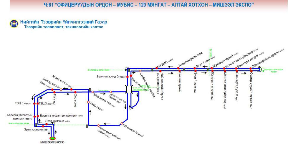 Мөн нийтийн тээврийн үйлчилгээний БММЗ нэрийн эцсийн зогсоолоор дайран өнгөрдөг чиглэлийн тээврийн хэрэгслүүдийн хөдөлгөөний аюулгүй байдлыг хангах үүднээс 2019 оны долоодугаар сарын 24-ний өдрөөс эхлэн Мишээл экспо хүртэл сунгаад байна.