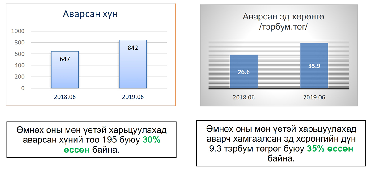 Өнгөрсөн оны мөн үетэй харьцуулахад гамшиг, аюулт үзэгдэл, ослоос аварсан эд хөрөнгө 9.3 тэрбум төгрөгөөр өссөн үзүүлэлттэй байна.
