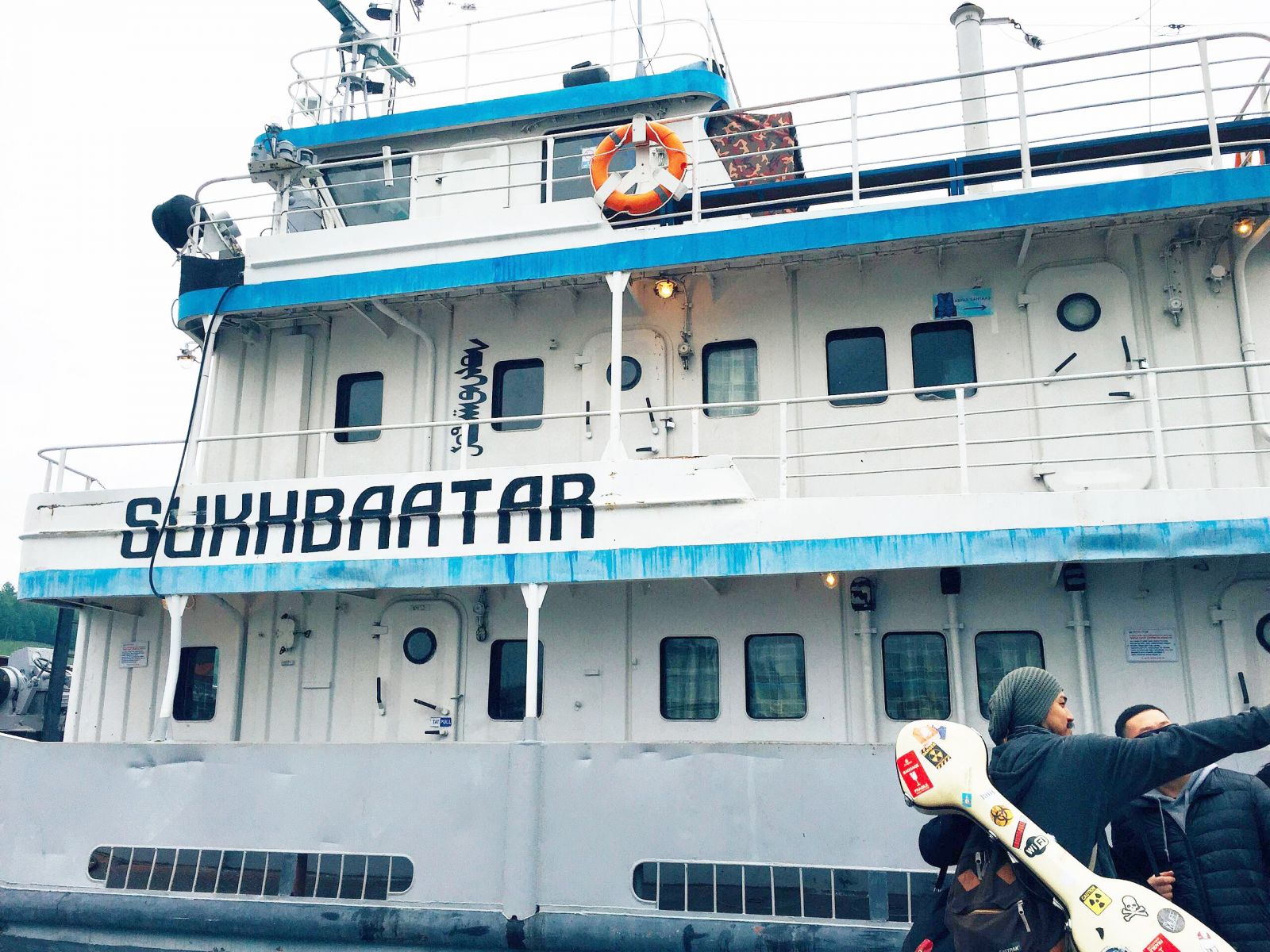 Хатгал тосгонд ирсэн дөрөв дэх өдөр. Бороо зүсэрсээр л. Бид өнөөдөр Сүхбаатар хөлөг онгоцоор далайтай танилцах аялалд гарахаар бэлтгэж байна. Хөлөг дээр тоглолт тавихыг зөвшөөрсөн учир уран бүтээлчид хөгжим, тоног төхөөрөмжөө шалгаад, 16:00 цагаас өмнө далайн эргийн зүг хөдлөлөө. Сүхбаатар хөлөг онгоц энгийн үед өдөртөө хоёр удаа, баяр наадмын үеэр дөрвөн удаа далайд гардаг гэнэ. Гурван давхар “Сүхбаатар” хөлөг онгоцны хамгийн дээд давхарт уран бүтээлчид тоглолтын бэлтгэл ажлаа хангаж, үлдсэн хоёр давхарт аялагчид цугласан байлаа.