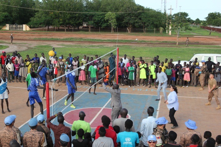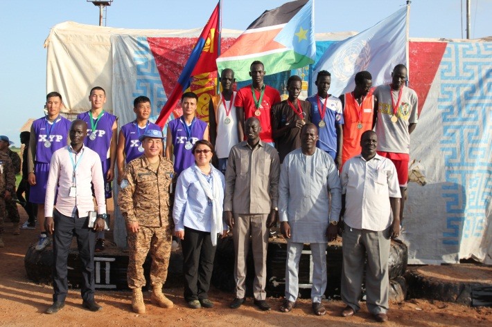 БНӨСУ-д НҮБ-ын UNMISS ажиллагаанд үүрэг гүйцэтгэж байгаа манай мотобуудлагын батальоны VIII ээлжийн цэргийн багийнхан иргэн цэргийн харилцааг бэхжүүлэх зорилгоор Бентью хотын төвд байрлах “Спорт цогцолбор”-ыг сэргээн засварлах ажлыг энэ сарын 15-22-ны өдрүүдэд гүйцэтгэснээ хүлээлгэж өглөө. Уг арга хэмжээнд UNMISS ажиллагааны мужийн зохицуулагч, хатагтай Хироко Хирахора, мотобуудлагын батальоны VIII ээлжийн цэргийн багийн захирагч, хурандаа Д.Жавхланбаяр, БНӨСУ-ын Хойд Лиеч мужийн залуучуудын хөгжил, мэдээлэл, спортын яамыг хариуцсан дарга ноён Лам Тунгар, Эрүүл мэнд хариуцсан дарга, ноён Тутлийт Жиеч, мужийн хөл бөмбөг, сагсан бөмбөг, гар бөмбөгийн холбоодын дасгалжуулагч нар, баг, тамирчид, НҮБ-ын болон орон нутгийн хэвлэл, мэдээллийн ажилчид, иргэд, хүүхэд, багачууд оролцсон байна.