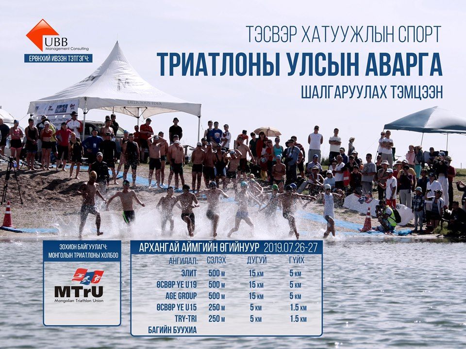 Тэсвэр хатуужлын спорт болох Триатлоны Улсын Аварга шалгаруулах тэмцээн 2019 оны долоодугаар сарын 26-27-ны баасан, бямба гарагт Архангай аймгийн Өгийнуурт болох гэж байна. Тэмцээнийг Монголын Триатлоны холбооноос зохион байгуулж явуулах бөгөөд ерөнхий ивээн тэтгэгчээр “UBB” компани, хамтрагчаар БСШУСЯ, БТСГ тус тус оролцох юм.