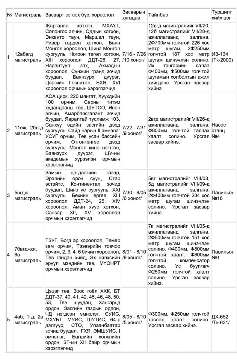 Наймдугаар сарын 10-ныг хүртэлх хугацаанд халуун усны хязгаарлалт хийх газруудыг танилцуулж байна.