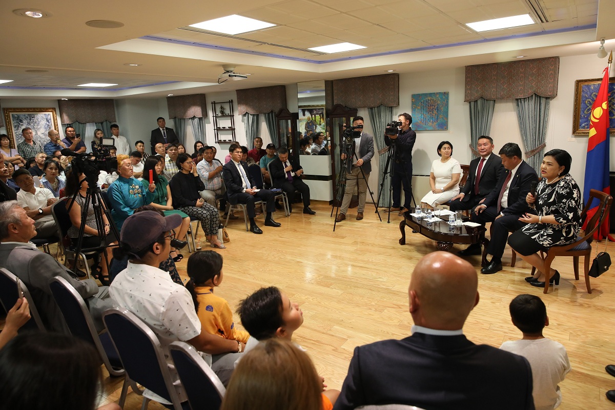 Уулзалтын эхэнд Монгол Улсын Ерөнхийлөгч Х.Баттулга “Та бүхэнд энэ өдрийн мэнд хүргэе. Монгол Улсын Ерөнхийлөгчийн тангараг өргөөд хоёр жил болж байна. Энэ хугацаанд хөрш хоёр орныхоо Төрийн тэргүүн нартай уулзаж албан гэрээ хэлэлцээрүүдийг хийсэн. Энэ удаад Ерөнхийлөгч Д.Трампын урилгаар АНУ-д айлчилж хоёр улсын харилцаа Стратегийн түншлэлийн түвшинд хүрснийг зарлалаа. Ингэснээр томоохон асуудлуудыг шийдэх боломжтой боллоо хэмээн харж байна. Энэ талаарх мэдээллийг тогтмол авч байгаа тул Америкт ажиллаж, амьдарч, суралцаж байгаа та бүхнийхээ санал, сэтгэгдлийг сонсоё” хэмээн уулзалтыг нээлээ.