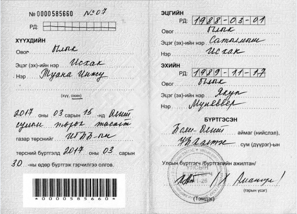 Үүний цаана Исхак Илыкийн охин Туана Инжугийн асуудал яригдах бөгөөд охин монголд төрсөн ч энэ улсын иргэн биш учраас хүн амын бүртгэлд оруулаагүй байна. Түүнчлэн охины төрсний гэрчилгээнд регистрийн дугаар олгогдоогүй. Нөгөө талаас Монгол дахь Туркийн элчин сайдын яамнаас охиныг Турк улсын иргэнээр бүртгэж авах ёстой ч хоёр жилийн турш бичиг баримт өгөөгүй аж. Тэд одоогоор Монголын Хүний эрхийн комисс, Гадаад хэргийн яам, Хууль зүйн яам, болон Гадаадын иргэн харьяатын газруудад хүсэлт гаргаад байгаа аж.