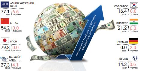 Засгийн газрын гадаад зээл, тусламжийн зарцуулалтыг хөгжлийн түнш байгууллагаар дараах зурагт харуулав.