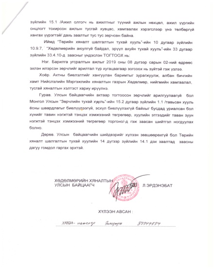 Шалгалтаар, тухайн барилгууд нь Хөдөлмөрийн аюулгүй байдал, эрүүл ахуйн тухай хуулийн 15 дугаар зүйлийн 15.1, Барилгын үйлдвэрлэлийн хөдөлмөрийн аюулгүй ажиллагааны дүрмийн 4.11 дэх заалт, 6.1.1 заалтуудыг зөрчсөн тул барилгын үйл ажиллагааг бүхэлд нь түр хугацаагаар зогсоосон байна.