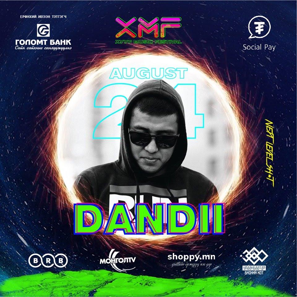 Харин хамгийн сүүлд онцлох уран бүтээлч бол Данди. Тэрээр анх Vanquish хамтлагаас уран бүтээлийн гараагаа хийж байсан. Сонсогчид нь түүний Dandi 27 гэдэг дуугаар нь бүр илүү мэдэх бизээ. Нэгэн үе дуучин Хишигдалайгийн найз залуу байсан тэрээр уран бүтээлийн хувьд нам гүм байна. гэхдээ Түүний сэтгэлд хоногшсон сайхан дууг  XMF 2019 олон улсын хөгжмийн наадмын тайзнаа сонсоно гэдэг юутай сайхан.