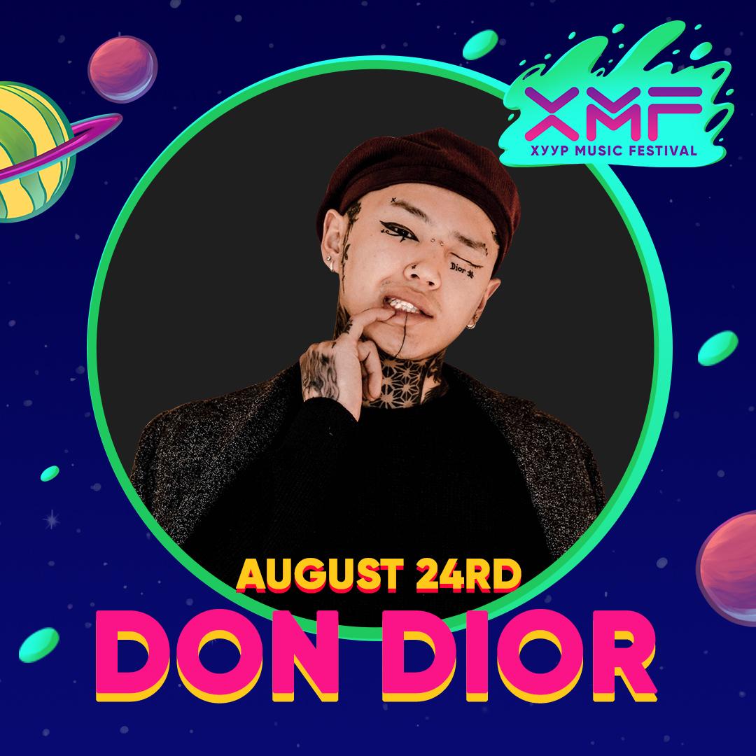 Өнгөрсөн долоо хоногт шинээр XMF 2019 олон улсын хөгжмийн наадмын артист листэнд багтсан нэгэн уран бүтээлч бол Don dior нэрээр залуучуудын дунд алдартай Мөнхтүлга юм. Don dior өөрийн гэсэн өвөрмөц төрхөөрөө залуучуудыг хэзээд байлдан дагуулж ирсэн нэг билээ. Түүний биений 50 хувь шивээстэй гэж нэгэн ярилцлаганд дурьдсан байсан ба эдгээр шивээснүүд нь түүний хувьд амьдралынх нь салшгүй нэгэн хэсэг гэж ээ.