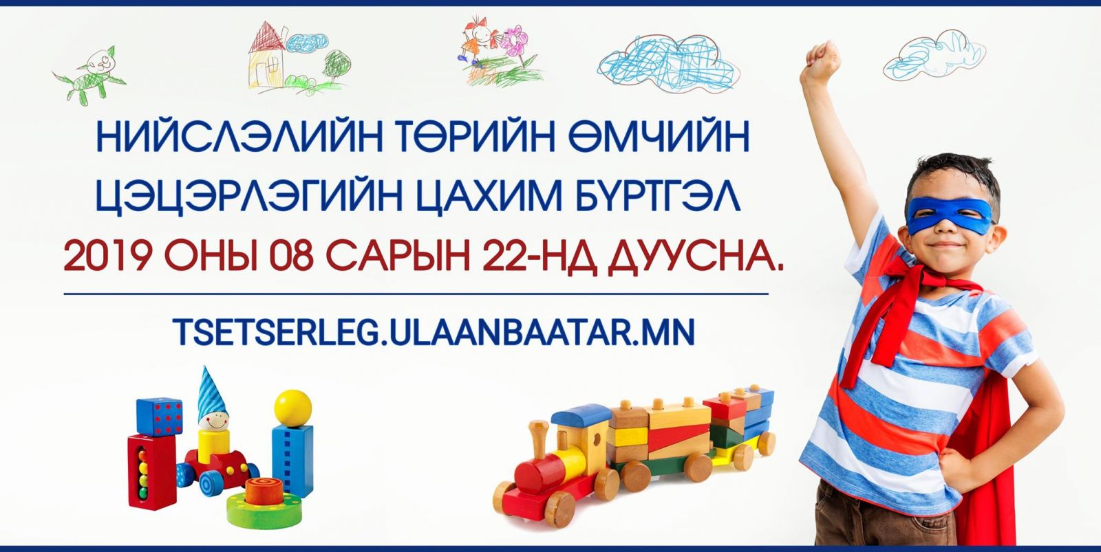 Төрийн үйлчилгээг иргэдэд нээлттэй, ил тод, түргэн шуурхай, чирэгдэлгүй үзүүлэх зорилгоор нийслэлийн төрийн өмчийн цэцэрлэгт шинээр элсэх, үргэлжлүүлэн суралцах хүүхдийн бүртгэлийн үйл ажиллагааг 2019 оны 07 дугаар сарын 22-ны өдрөөс эхлэн нэг сарын хугацаанд зохион байгуулж байгаа бөгөөд бүртгэл ирэх сарын 22-ны өдрийн 23 цаг 59 минутанд дуусах юм. Шинээр цэцэрлэгт элсэж буй хүүхдийг https://tsetserleg.ulaanbaatar.mn/ системд хандан дараах зааврын дагуу бүртгүүлж баталгаажуулна. Харин Цахим системд бүртгүүлэх боломжгүй иргэд долдугаар сарын 22-ны өдрөөс эхлэн ажлын өдрүүдэд тухайн дүүргийн Боловсролын хэлтэст, наймдугаар сарын 12-ны өдрөөс хамран сургах тойргийн цэцэрлэгт өөрийн биеэр очиж бүртгүүлнэ.