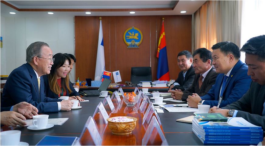 Ноён Бан Ги Мүн бүс нутгийн төдийгүй дэлхий дахины хэмжээнд байгаль, орчны асуудлуудыг түлхүү анхаарч ажиллах нь чухлыг тэмдэглээд энэ жилд бүс нутгийн хэмжээнд зохион байгуулагдах томоохон хурлуудын талаар танилцуулан Монгол Улсыг идэвхитэй оролцон хамтран ажиллана гэдэгт итгэлтэй байгаагаа уулзалтын эхэнд тэмдэглэн хэлэв.