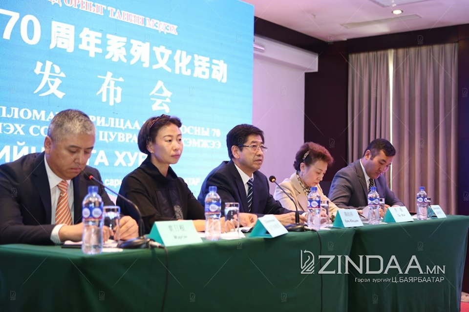 Хятад, Монголын дипломат харилцаа тогтоосны 70 жилийн ойг тэмдэглэх хүрээнд “Хятад орныг танин мэдэх” соёлын цуврал арга хэмжээ ирэх сарын 2-6-ны өдрүүдэд Улаанбаатар хотноо зохион байгуулагдах гэж байна. Соёлын цуврал ажлын талаар ӨМӨЗО-ны Ардын засгийн газрын хэвлэл мэдээллийн албанаас өнөөдөр /2019.08.21/ мэдээлэл хийлээ.