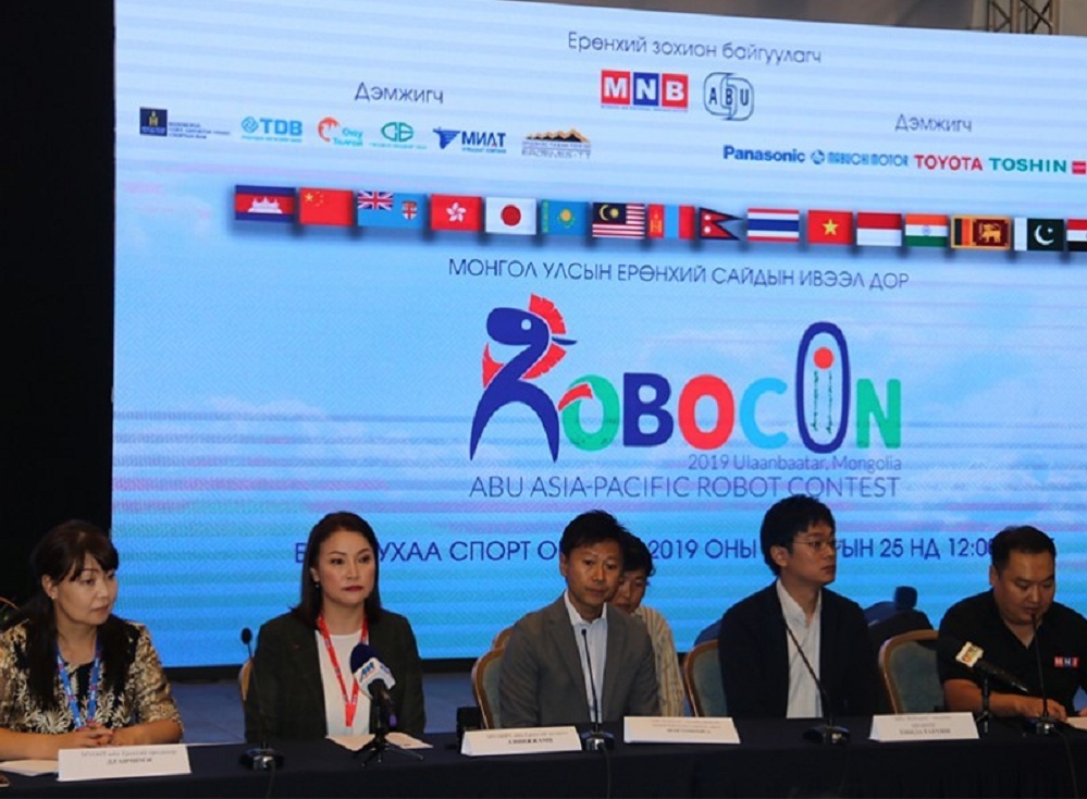 “ABU Robocon–2019 Mongolia” олон улсын роботын тэмцээний хэвлэлийн хурал өнөөдөр боллоо. Тус хэвлэлийн хуралд Монголын үндэсний олон нийтийн радио, телевизийн Ерөнхий захирал Л.Нинжжамц, Монголын үндэсний олон нийтийн телевизийн Ерөнхий продюсер Д.Ганчимэг, “ABU Robocon–2019 Mongolia” олон улсын төслийн Ерөнхий продюсер Г.Агааноров, “ABU Robocon” төслийн ерөнхий зохион байгуулах хорооны дарга Араи Томохиса, “ABU Robocon” төслийн продюсер Ёшида Такүши нар оролцож сэтгүүлчдэд мэдээлэл өглөө.