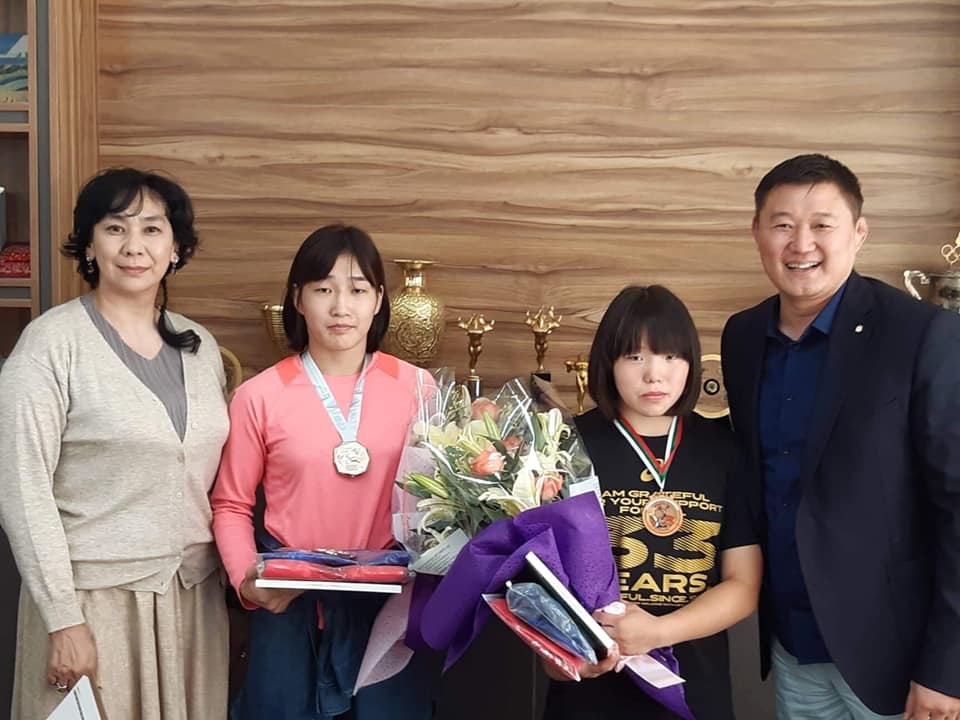 "Таллин-2019” залуучуудын ДАШТ-ий мөнгөн медальт, "Хилчин" спорт хорооны тамирчин Нандинцэцэгийн Анударь, "Софи-2019" өсвөр үеийн ДАШТ-ий хүрэл медальт, "Женко" клубийн тамирчин Мөнхбатын Мөнхгэрэл нарыг багш нарын хамт /2019.08.23/ МЧБХ-ны байранд хүлээн авч уулзан хүндэтгэл үзүүллээ.