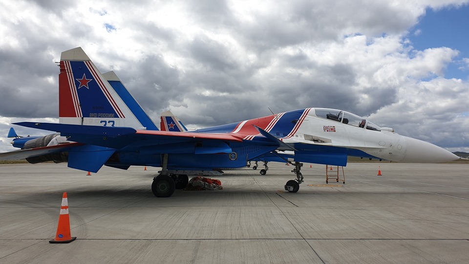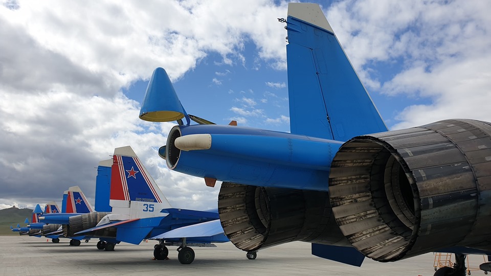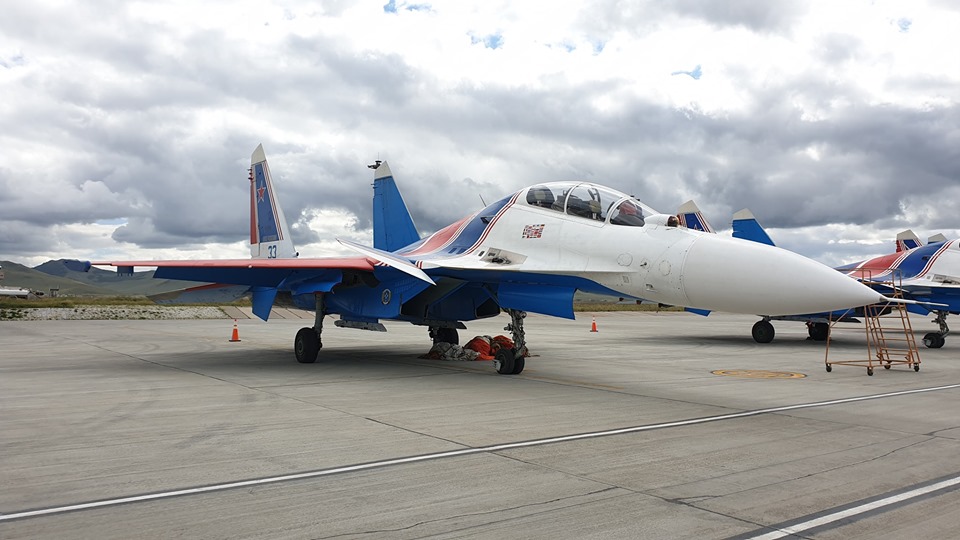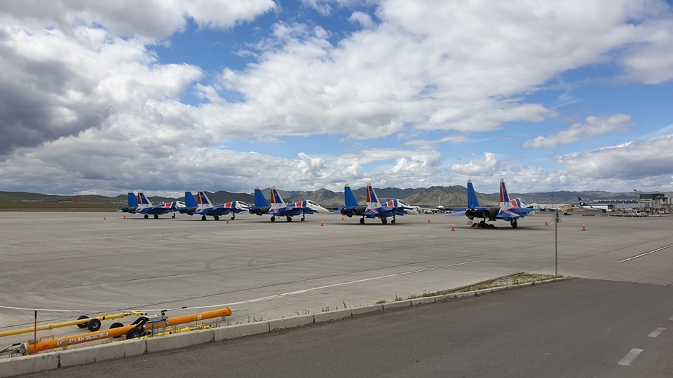 ОХУ-ын Агаар-сансрын хүчний гвардын 234-р нисэх хорооны “Русские Витязи” багийн Су-30СМ сөнөөгч онгоцнууд өнөөдөр /2019.08.26/ “Чингис хаан” Олон улсын нисэх буудалд газардлаа.