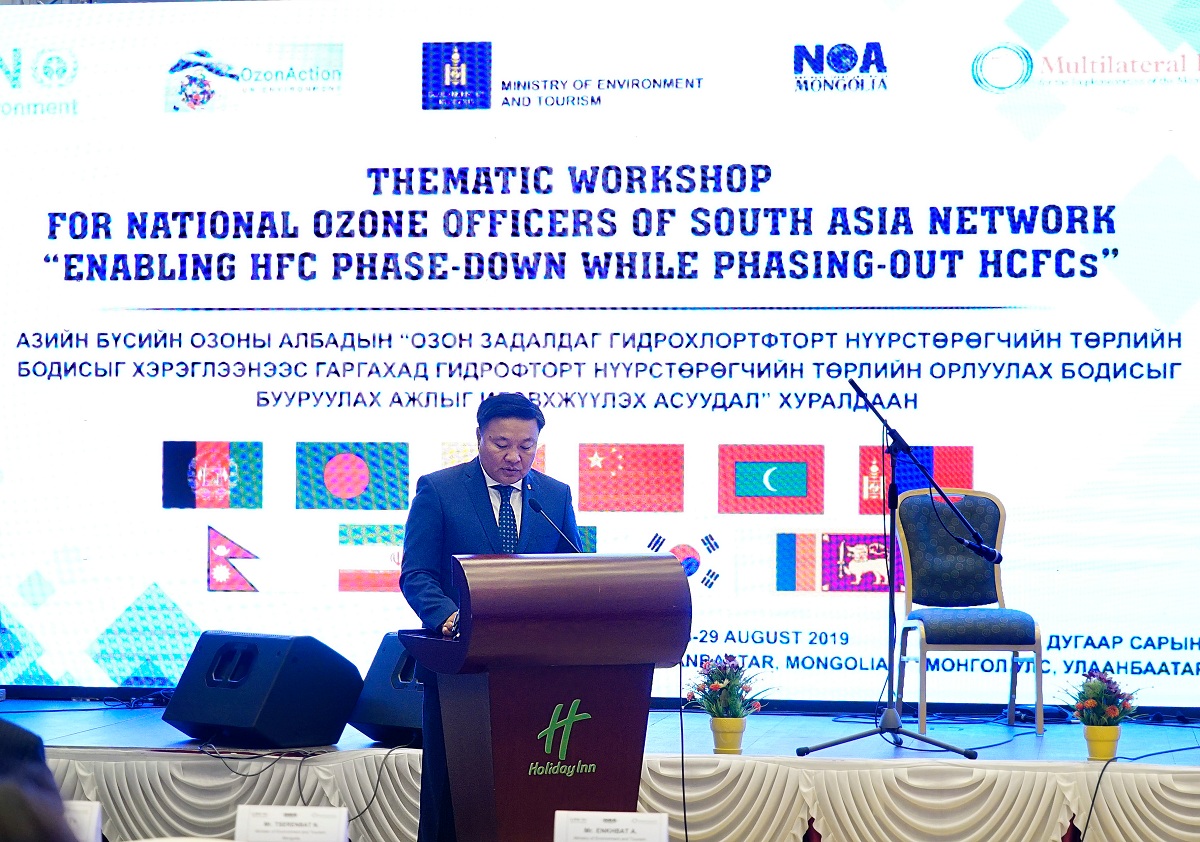 Азийн бүсийн Озоны албадын “Озон задалдаг гидрохлортфторт нүүрстөрөгчийн төрлийн бодисыг хэрэглээнээс гаргахад гидрофторт нүүрстөрөгчийн төрлийн орлуулах бодисыг бууруулах ажлыг идэвхжүүлэх асуудал” хуралдаан Монгол Улсад зохион байгуулагдаж байна. Энэ сарын 26-29-ны өдрүүдэд үргэлжлэх тус хурлыг Байгаль орчин, аялал жуулчлалын сайд Н.Цэрэнбатын нээж үг хэллээ.