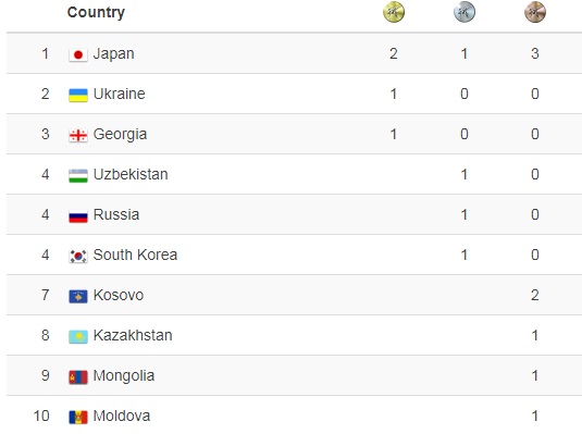 Эхний өдөр алтан медаль аваагүй байсан япончууд эмэгтэй 52, эрэгтэй 66 кг-ын жинд түрүүлснээс гадна хоёр хүрэл медаль авч багаараа тэргүүлж эхэллээ.