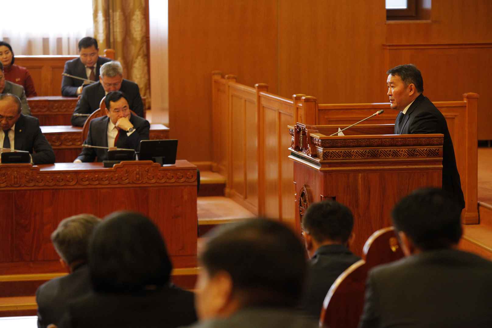 Гэхдээ ач холбогдол муутай төсөл тулгах бус Засгийн бүх эрх мэдэл ард түмний мэдэлд байх Үндсэн хуулийн зарчмын дагуу засаглалын хэлбэрээ сонгох боломжийг ард түмэнд өгч, нэг мөр асууж шийдвэрлэх ёстой. Тодруулбал, Монгол Улсад цаашид Ерөнхийлөгчийн засаглалтай байх уу, парламентын засаглалтай байх уу гэдгийг ард түмнээсээ асууж шийдвэрлэх шаардлагатай байна. Миний бие ард нийтийн санал асуулга явуулах УИХ-ын тогтоолын төсөл боловсруулсан бөгөөд ард иргэдийнхээ өгсөн хариулт шийдвэрийн хүрээнд шинэ Үндсэн хуулийн төсөл боловсруулж нийтээр хэлэлцүүлэн батлахаас өөр аргагүй гэж үзэж байна. Ингэснээр гүйцэтгэх засаглалын тэргүүнийг улстөрчдийн барьцаа хүлээснээс ангижруулж, улс орон тогтвортой хөгжих боломж бүрдэнэ. Тиймээс Үндсэн хуулийн асуудлаар явуулах ард нийтийн санал асуулгын тухай УИХ-ын тогтоолын төлийг нэн даруй УИХ-аар хэлэлцэн шийдвэрлэхийг хүсье” гэжээ.