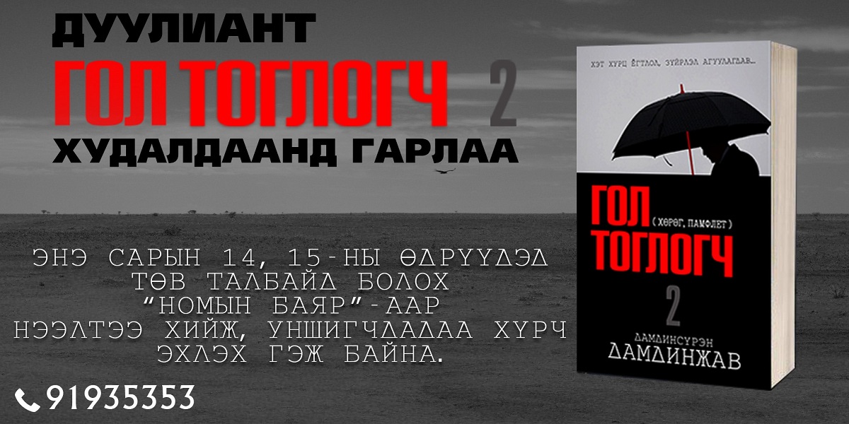 Тус ном нь маргааш буюу энэ сарын 14, 15-ны өдрүүдэд болох “Номын баяр”-ын үеэр төв талбайд нээлтээ хийж, уншигчдадаа хүрч эхлэх юм байна.