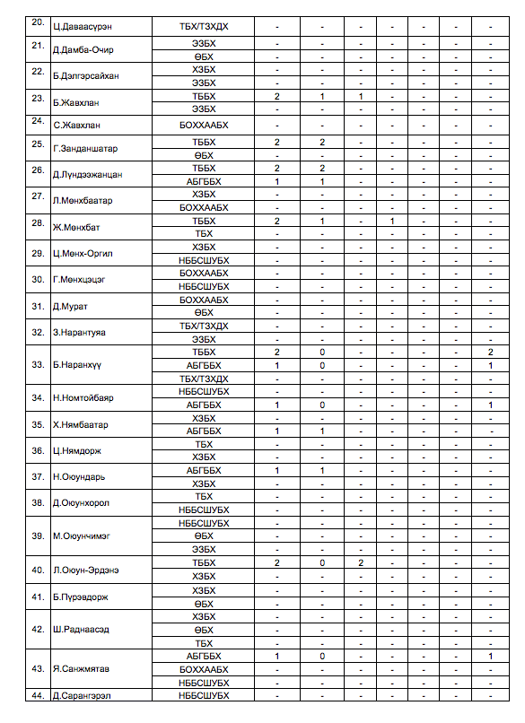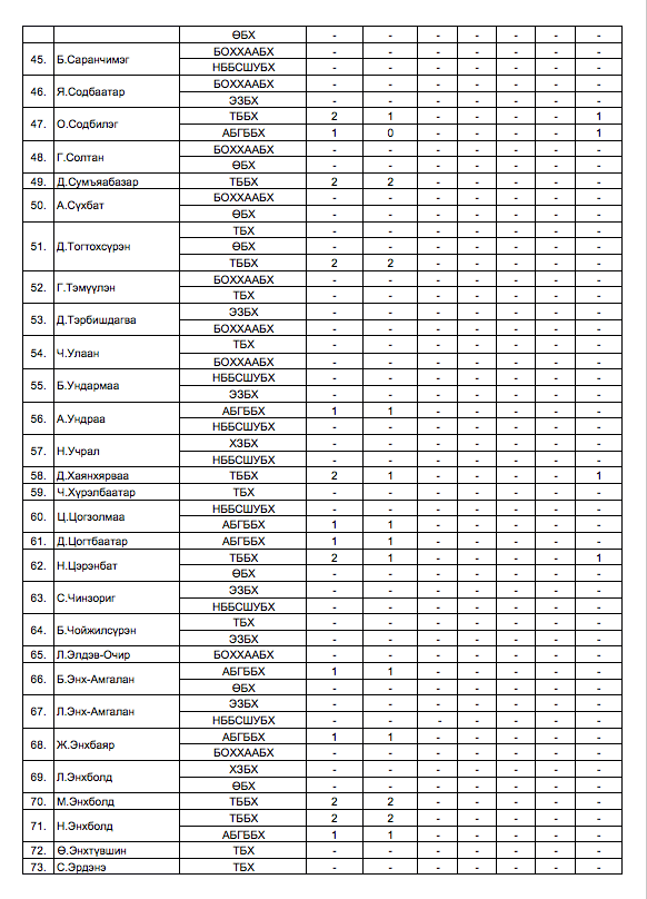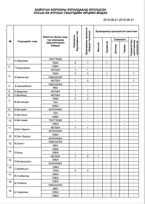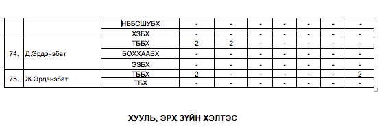 УИХ-ын Хууль эрх зүйн хэлтсээс түшээдийн өнгөрсөн сарын байнгын хорооны хуралдааны ирцийн мэдээллийг албан ёсны сайтдаа байршуулжээ.